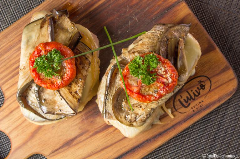 COM QUEIJO SCAMORZA, BERINJELA, TOMATE SECO E CASTANHAS